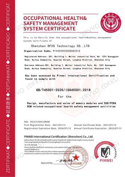 | Âmbito Gama /: | Design, manufacture and sales of memory modules and ssd/pcba oem related occupational health safety management activities |