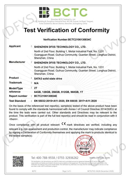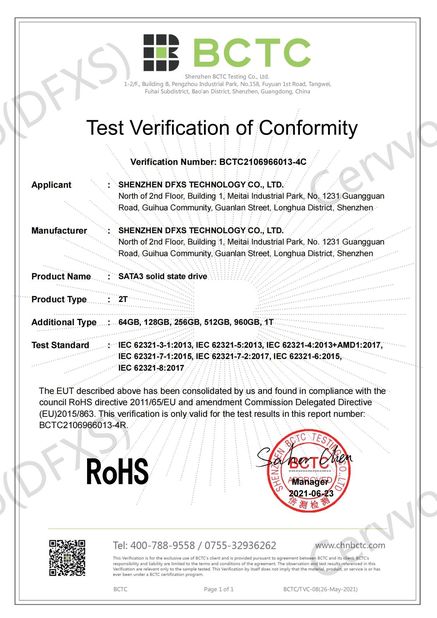 | Padrão: | RoHS for SATA3 Solid State Drive |