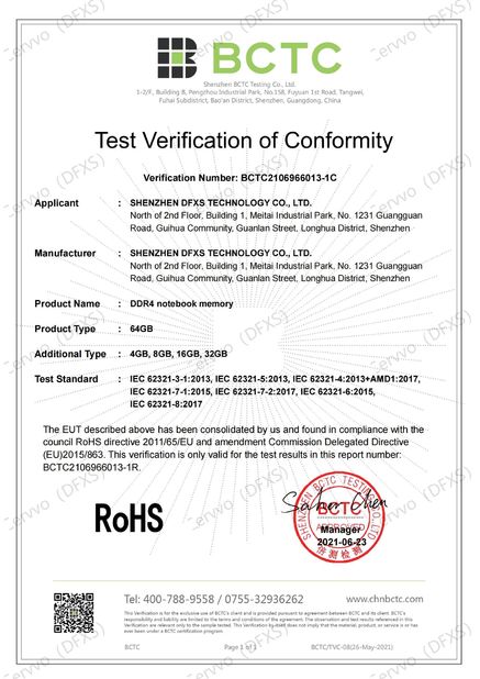 | Padrão: | RoHS for DDR4 SODIMM RAM |