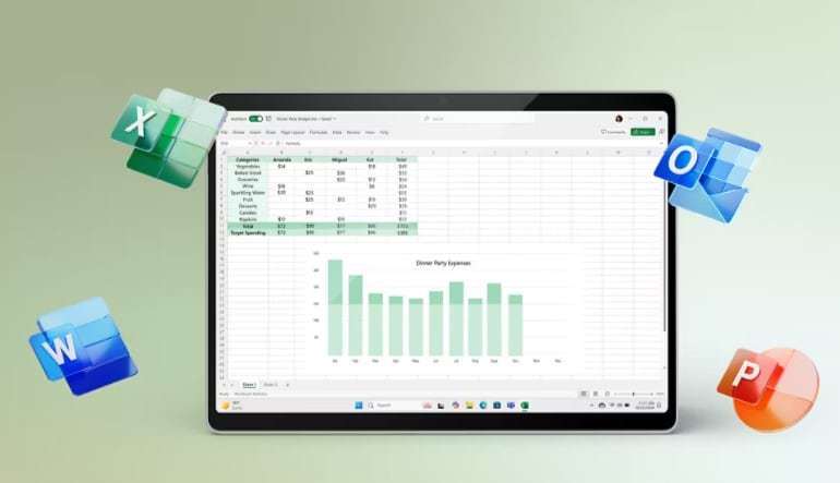 Full suite for work: Word, Excel, PowerPoint, Outlook, Teams